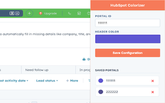 Header Colors for HubSpot is een handige Chrome-extensie waarmee gebruikers de headerkleur van HubSpot kunnen aanpassen. Deze tool biedt de mogelijkheid om de kleur te wijzigen op basis van het instance ID, waardoor een gepersonaliseerde ervaring kan worden gecreëerd. Het gebruik van deze extensie is eenvoudig en vereist geen uitgebreide technische kennis, waardoor het toegankelijk is voor alle gebruikers van HubSpot.